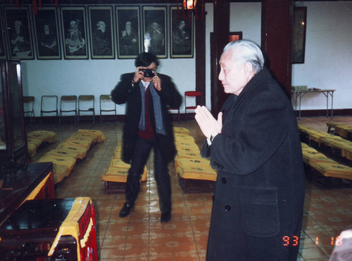1993年1月,赵朴初居士在上海居士林大殿礼佛