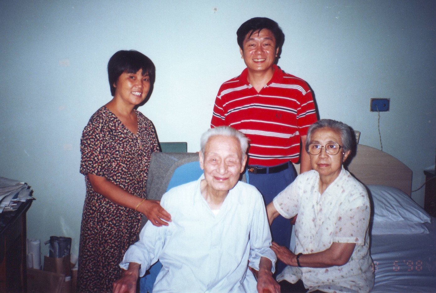 1998年作者夫妇探望赵朴老与赵夫人于北京医院