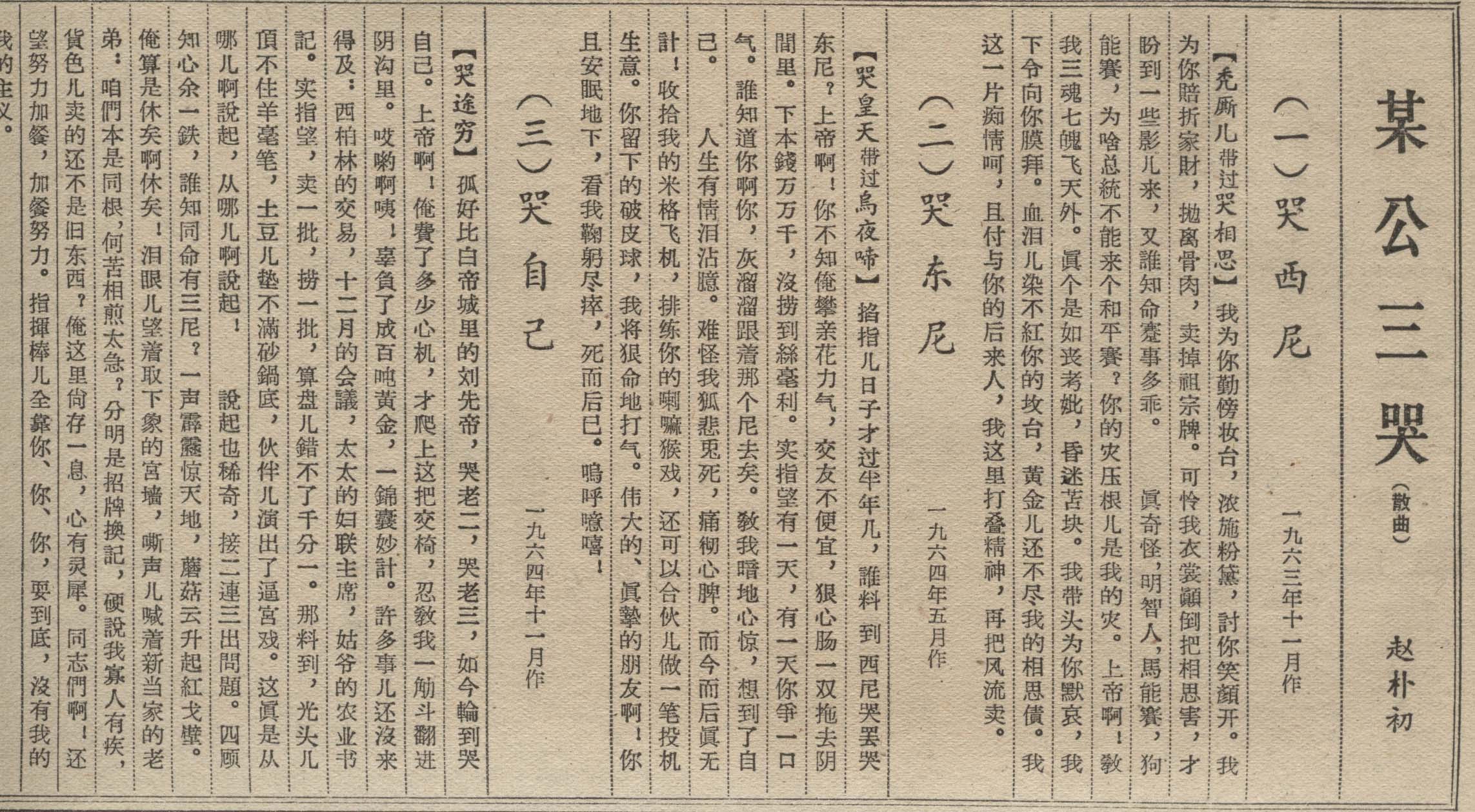 1965年2月2日,春节《解放日报》刊出的《某公三哭》曲