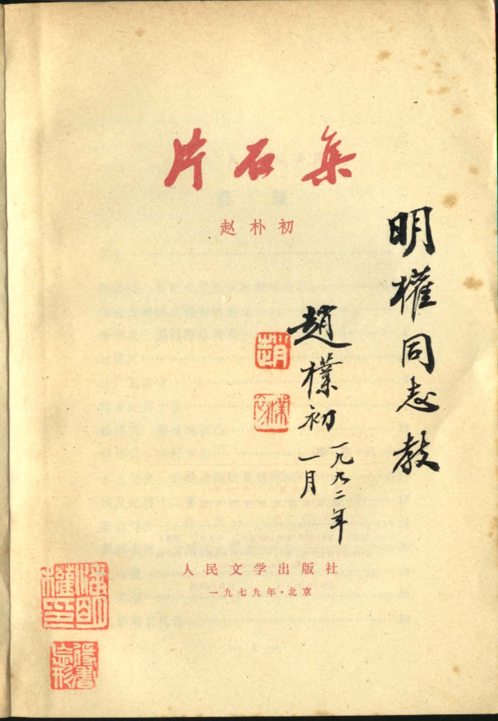 赵朴老在作者书上补题签