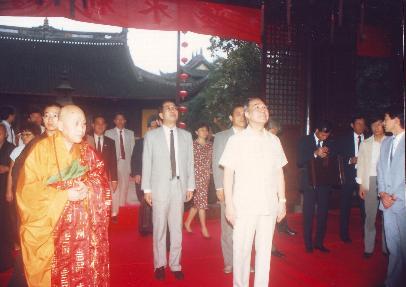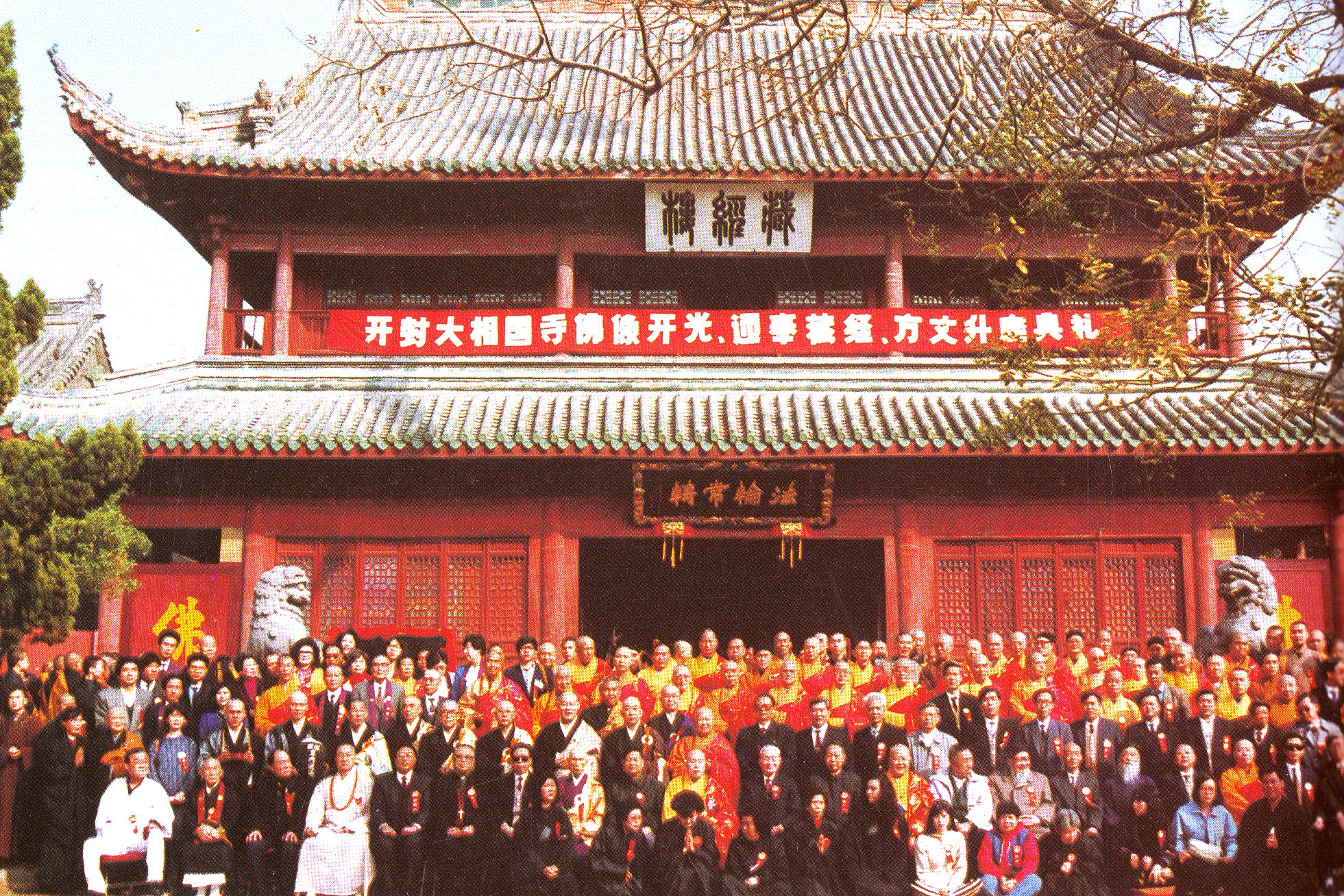 1990年开封大相国寺举行寺院重修落成、佛像开光、方丈升座仪式合影
