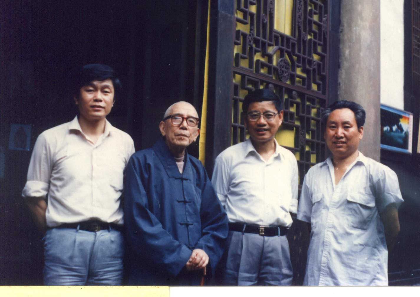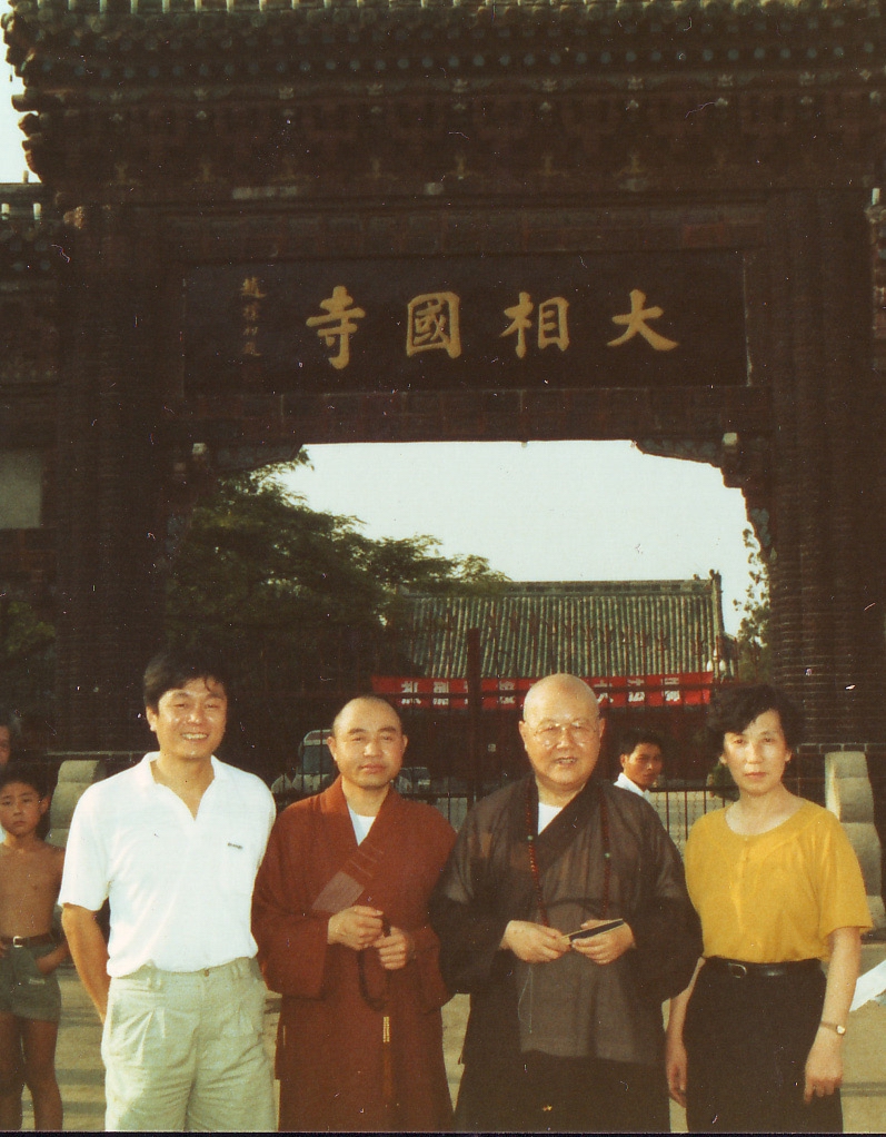 1992年7月28日作者护送真禅法师去开封大相国寺筹备开光等活动事,(右起)河南杜处长、真禅法师、弘法法师