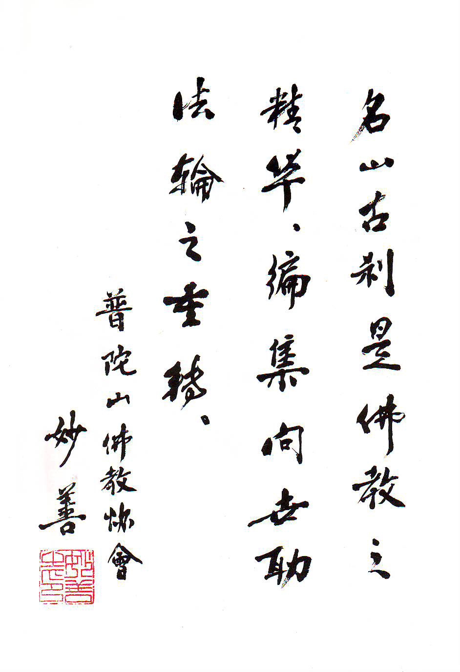 妙善法师手迹