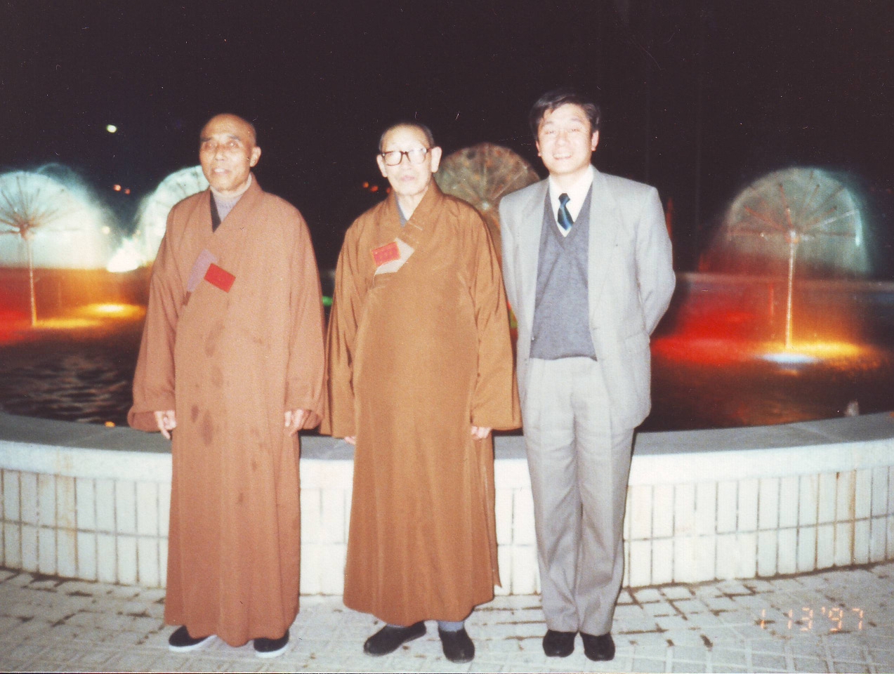 1997年1月13日珠海,作者与安上(左一)、明学法师(左二)