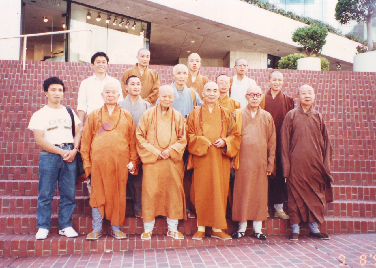 1992年9月3日,作者在美国万佛城与宣化(左二)、明旸、真禅法师合影