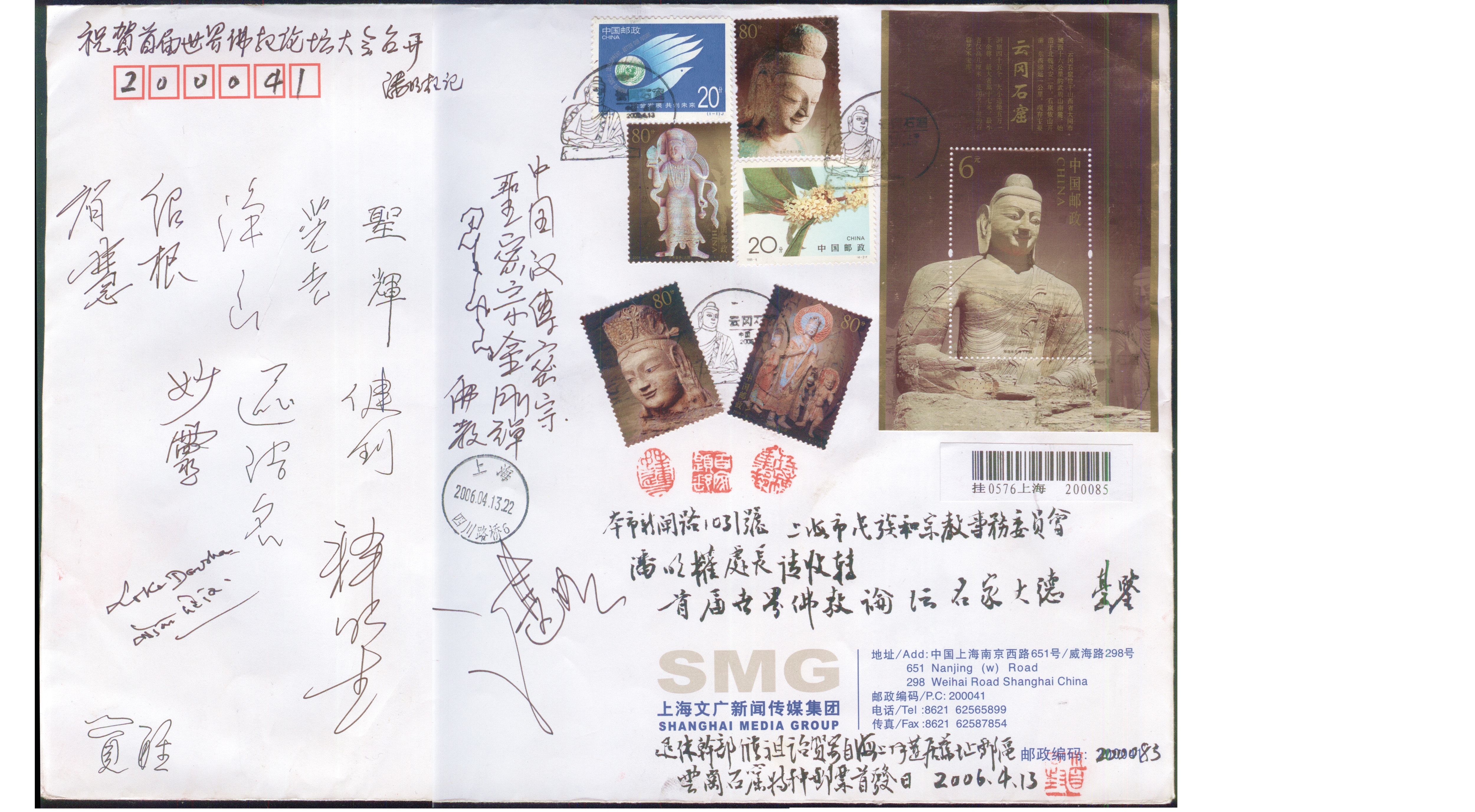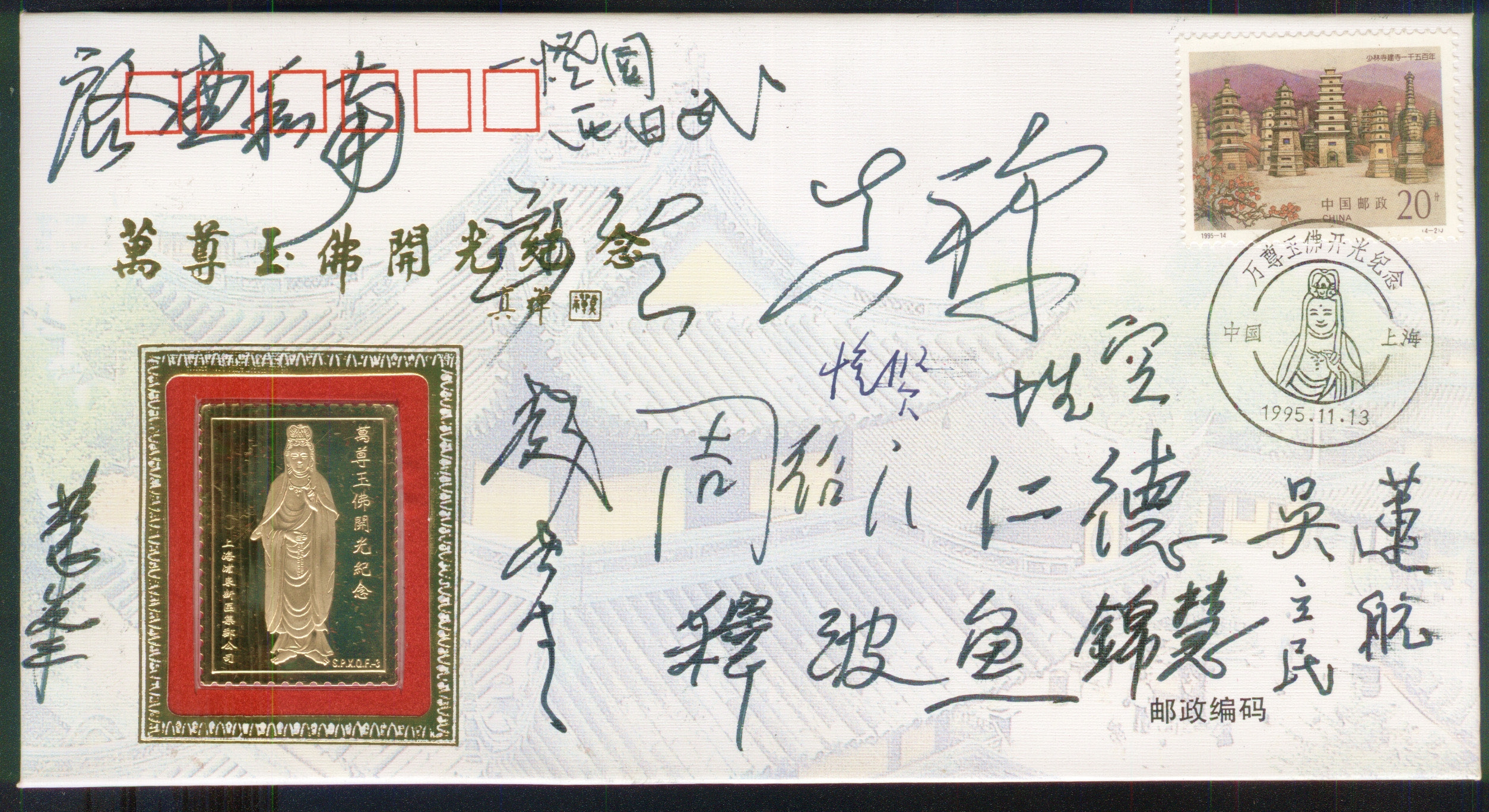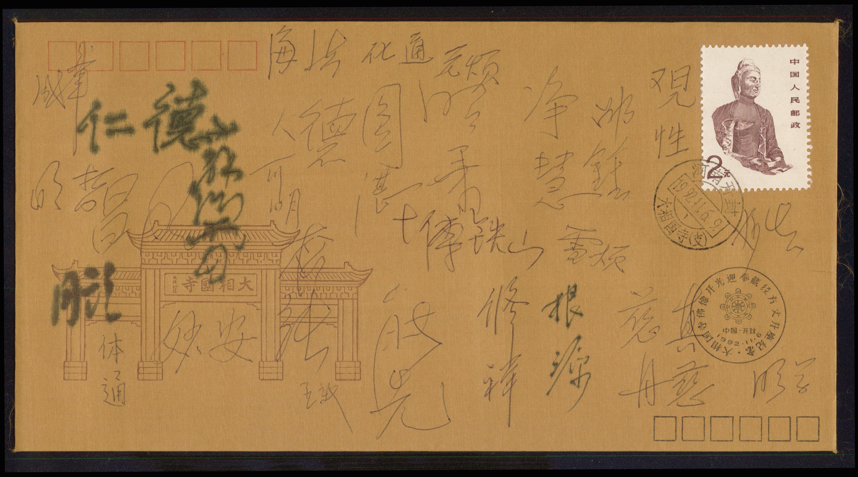 各地参加中华寺落成、开光、升座的法师们签名大信封