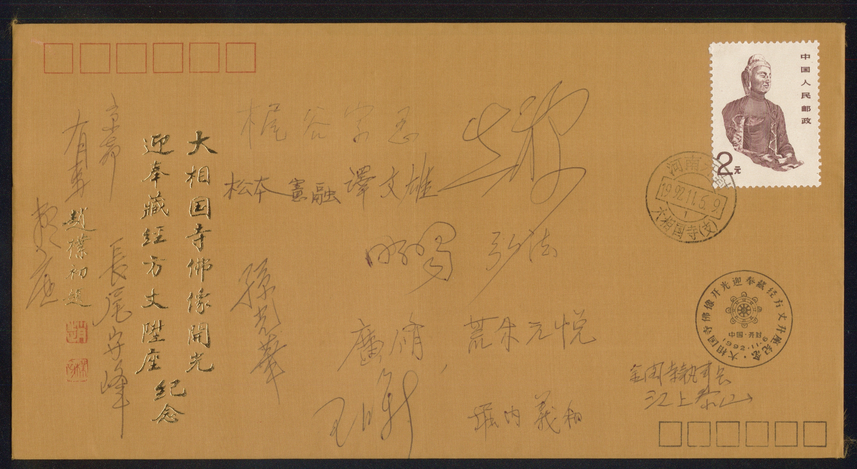 丝绸纪念封——日本代表团和开封市领导签名