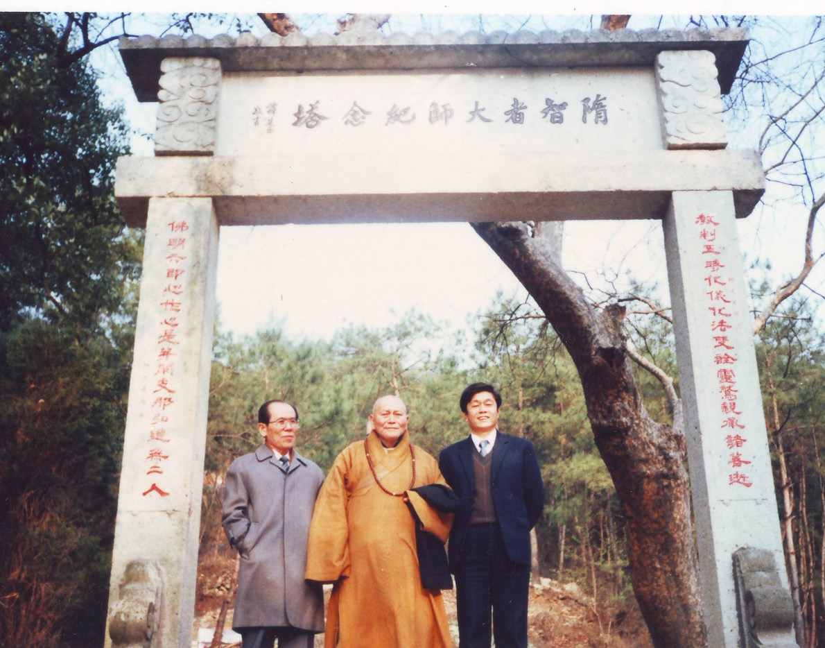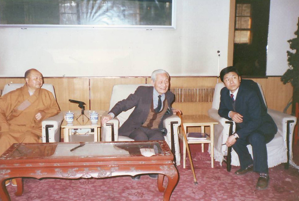 苏州戒幢律寺,右起:明开法师、赵朴初会长、安上法师