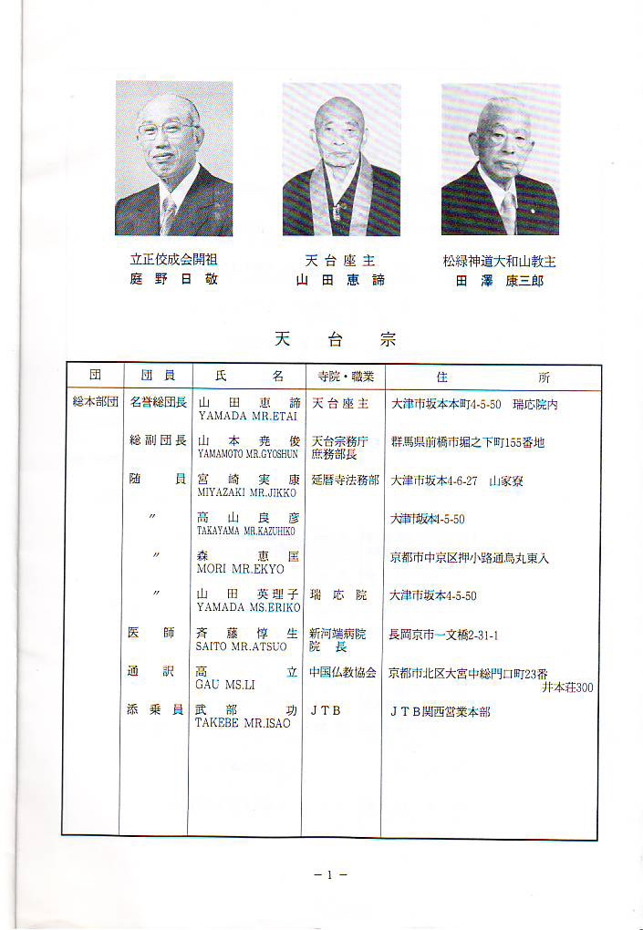 祝寿会日本访华团总本部团名单