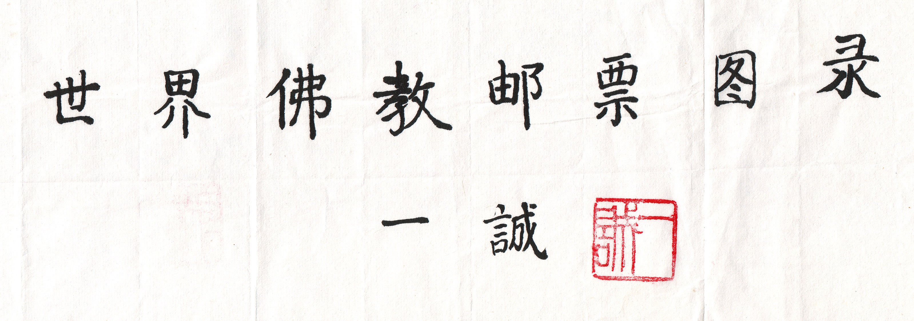 中国佛教协会前会长一诚法师为笔者题写书名《世界佛教邮票图录》