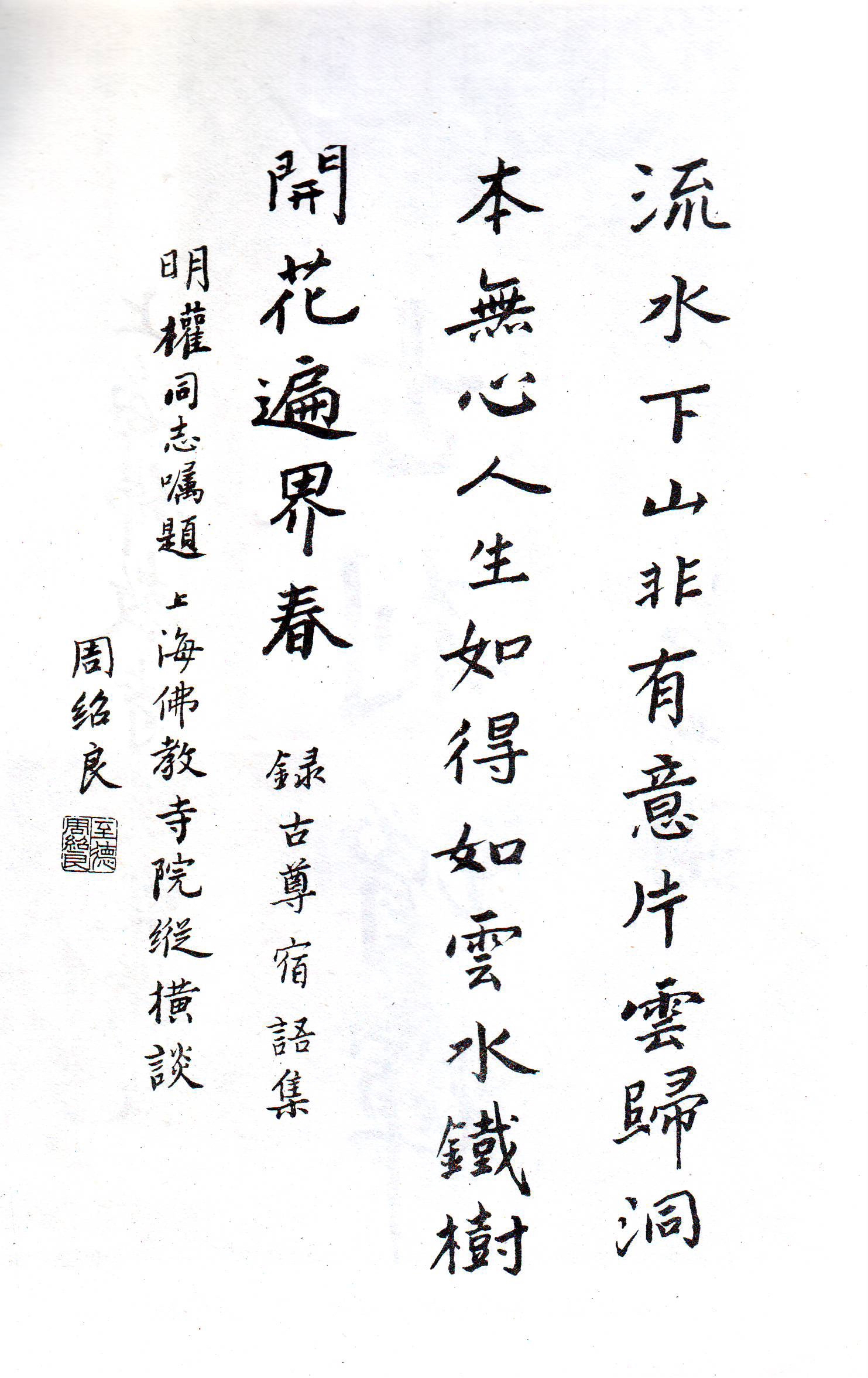 中国佛教协会副会长明旸法师为原书《上海佛教寺院纵横谈》题词