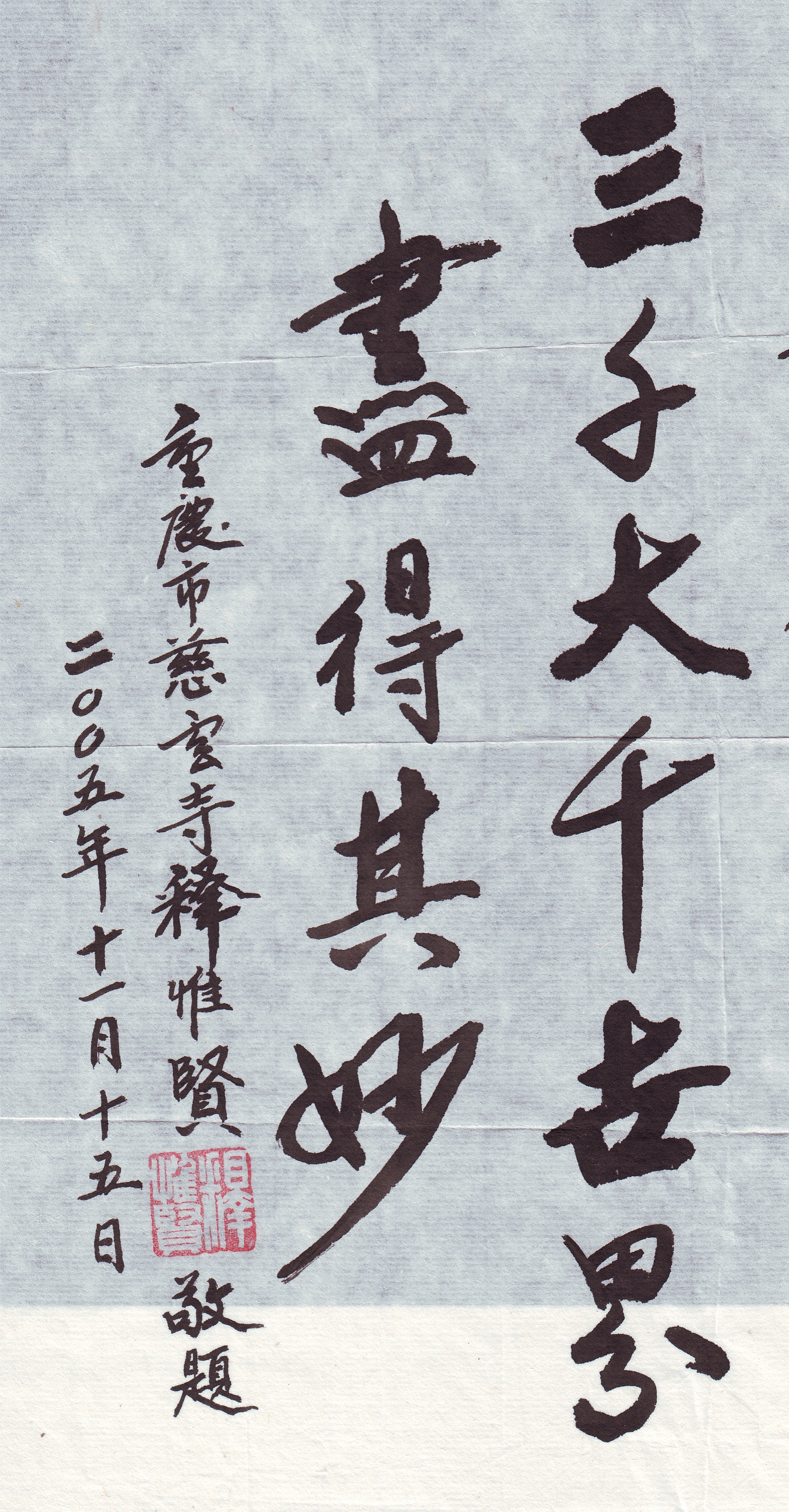 中国佛教协会咨文委员会主席、重庆市佛教协会会长惟贤法师题词