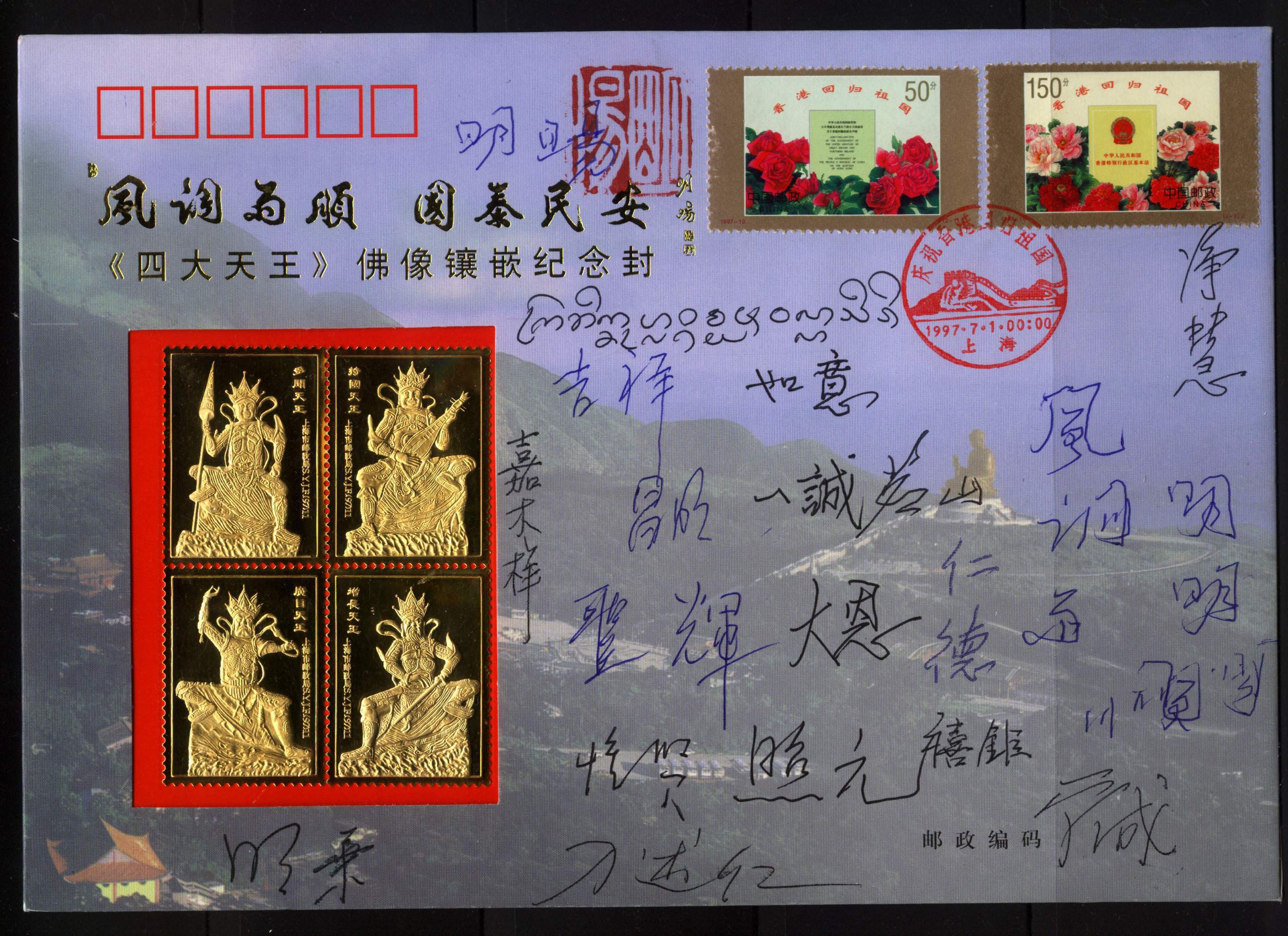 作者收藏的香港回归纪念封,众方丈签名