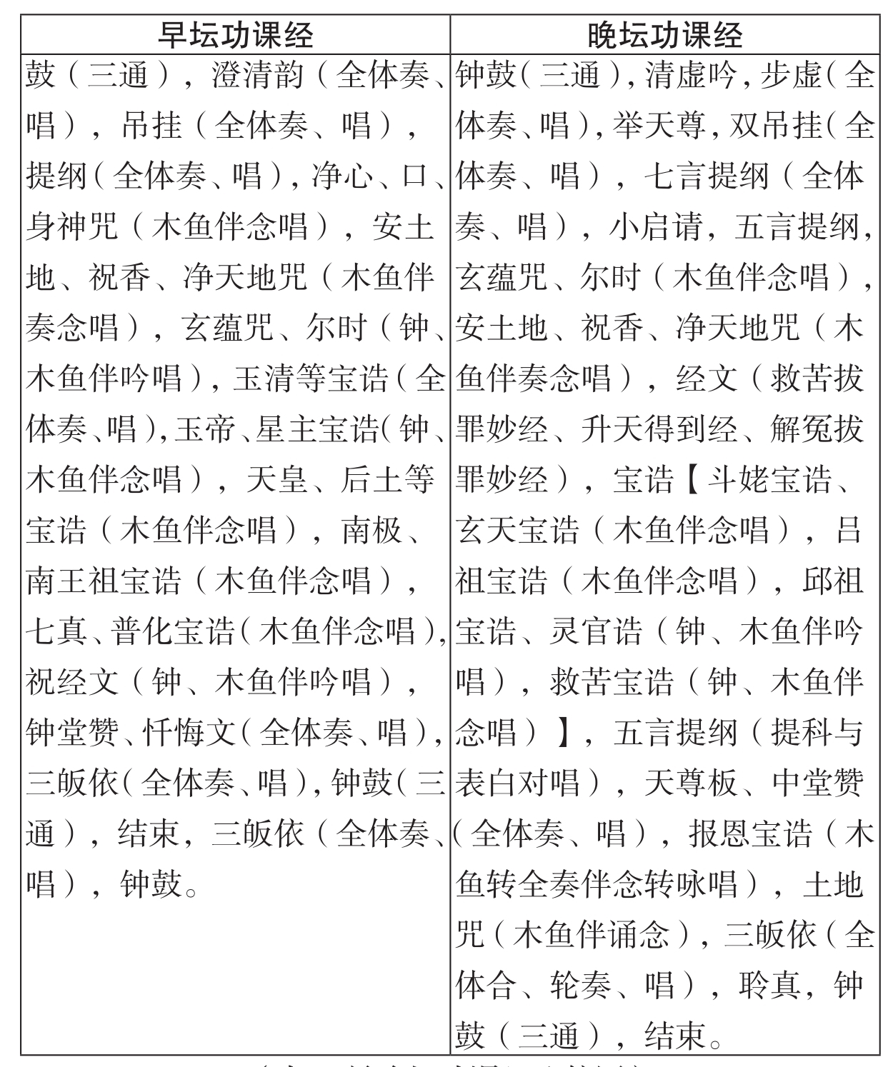 (表2 早晚坛功课经比较图)