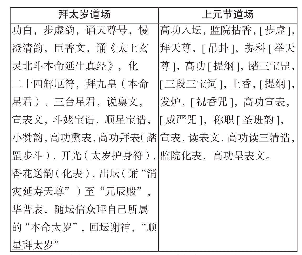 (表3 拜太岁、上元节科仪内容比较)