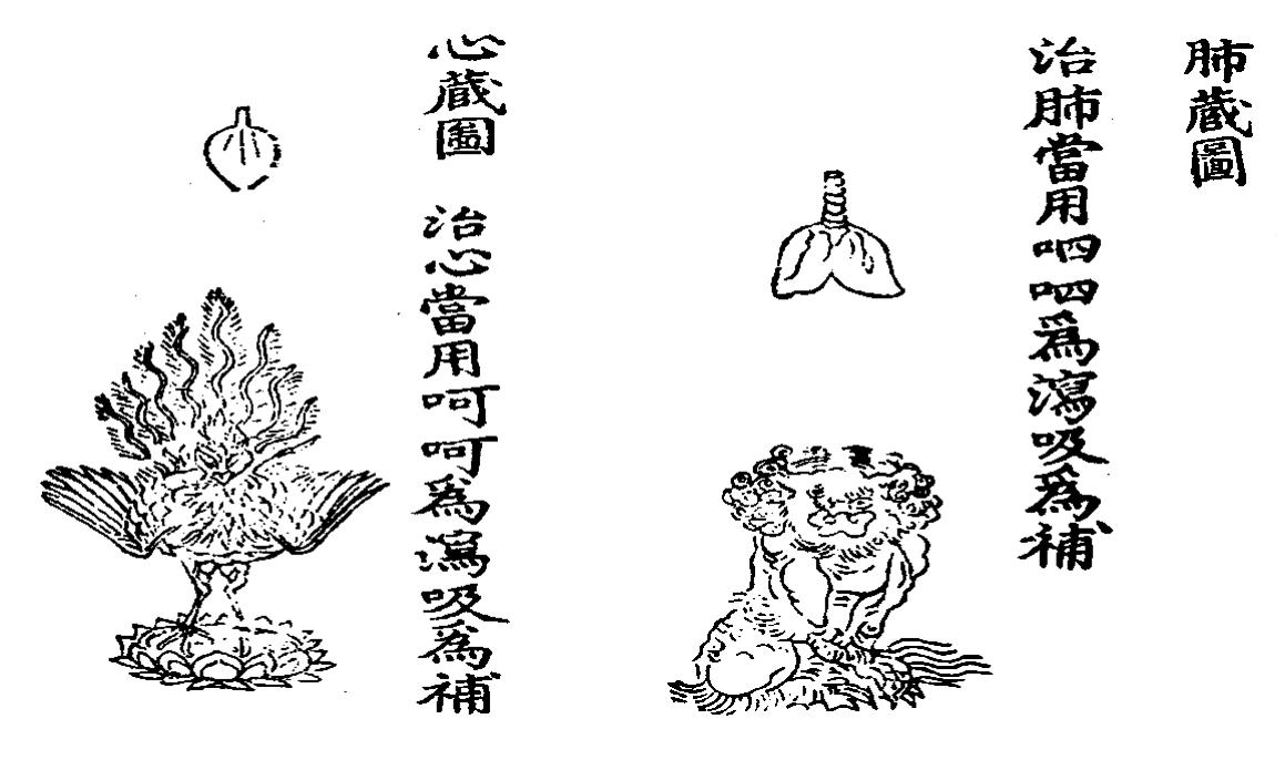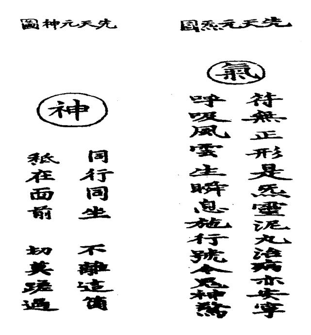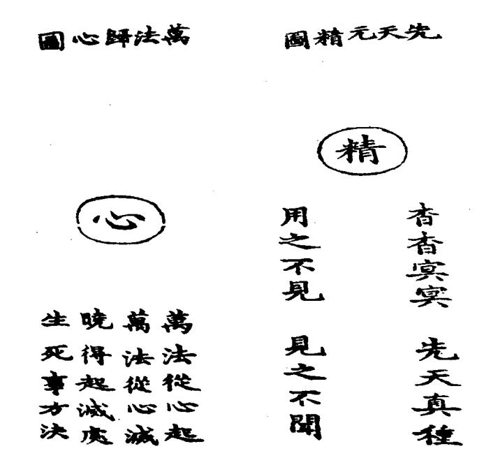 混元三宝之图、初真内观静定之图(节选自《道藏》卷17《清静经注》)