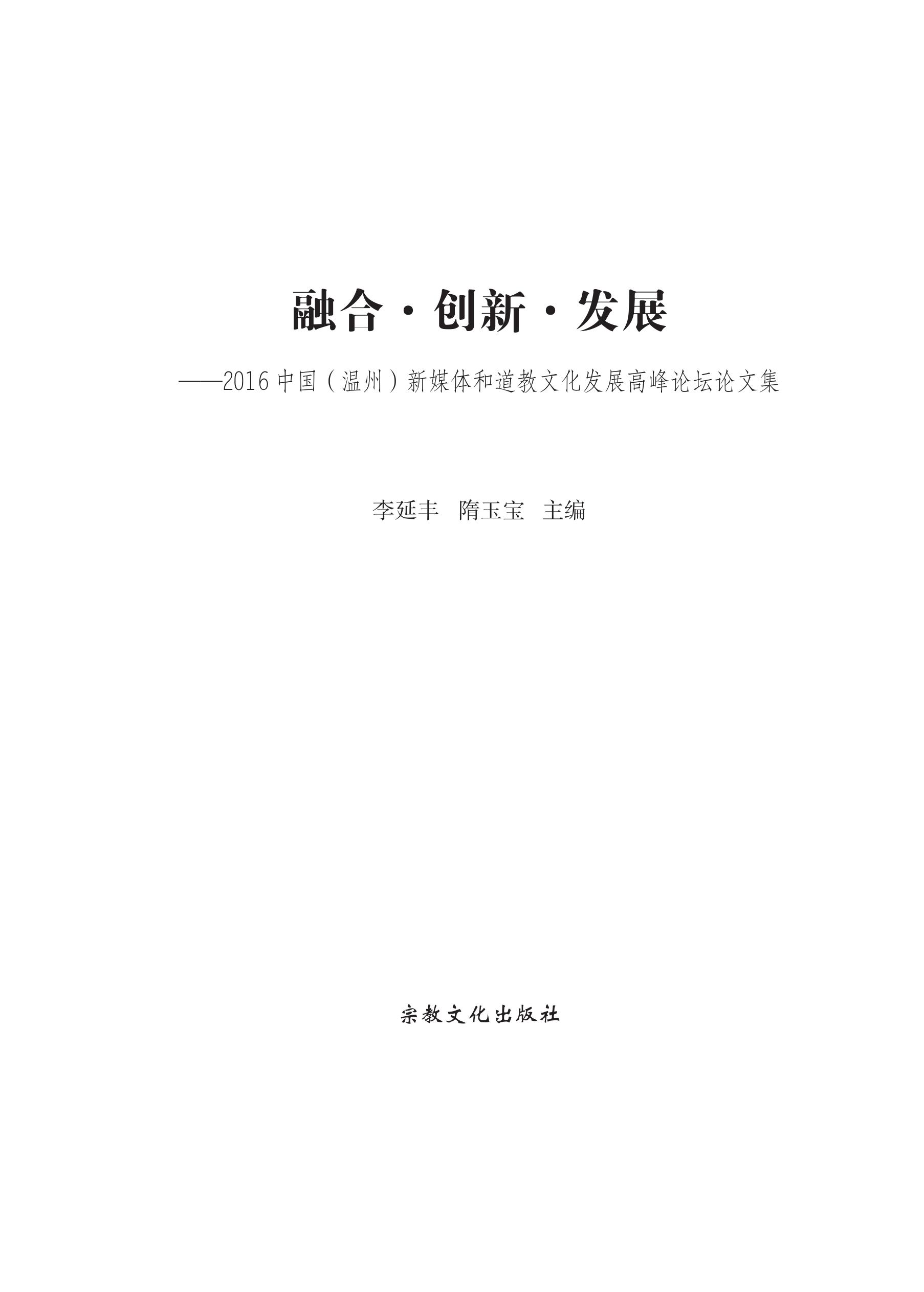 首页 > 图库 > 融合·创新·发展:2016中国(温州)新媒体和道教文化发展高峰论坛论文集