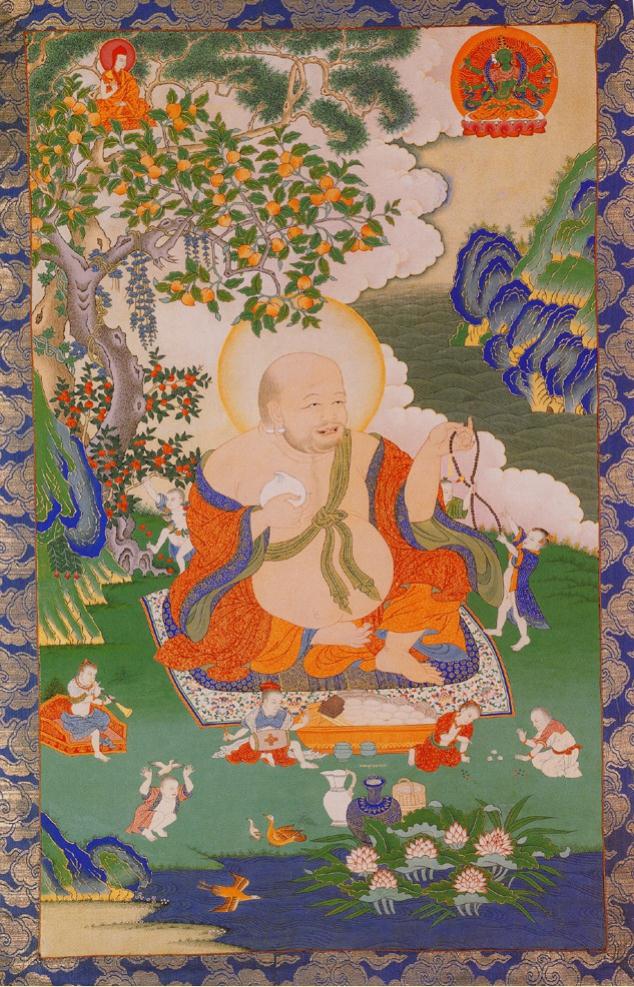 彩图3-13 手托仙桃的布袋和尚像