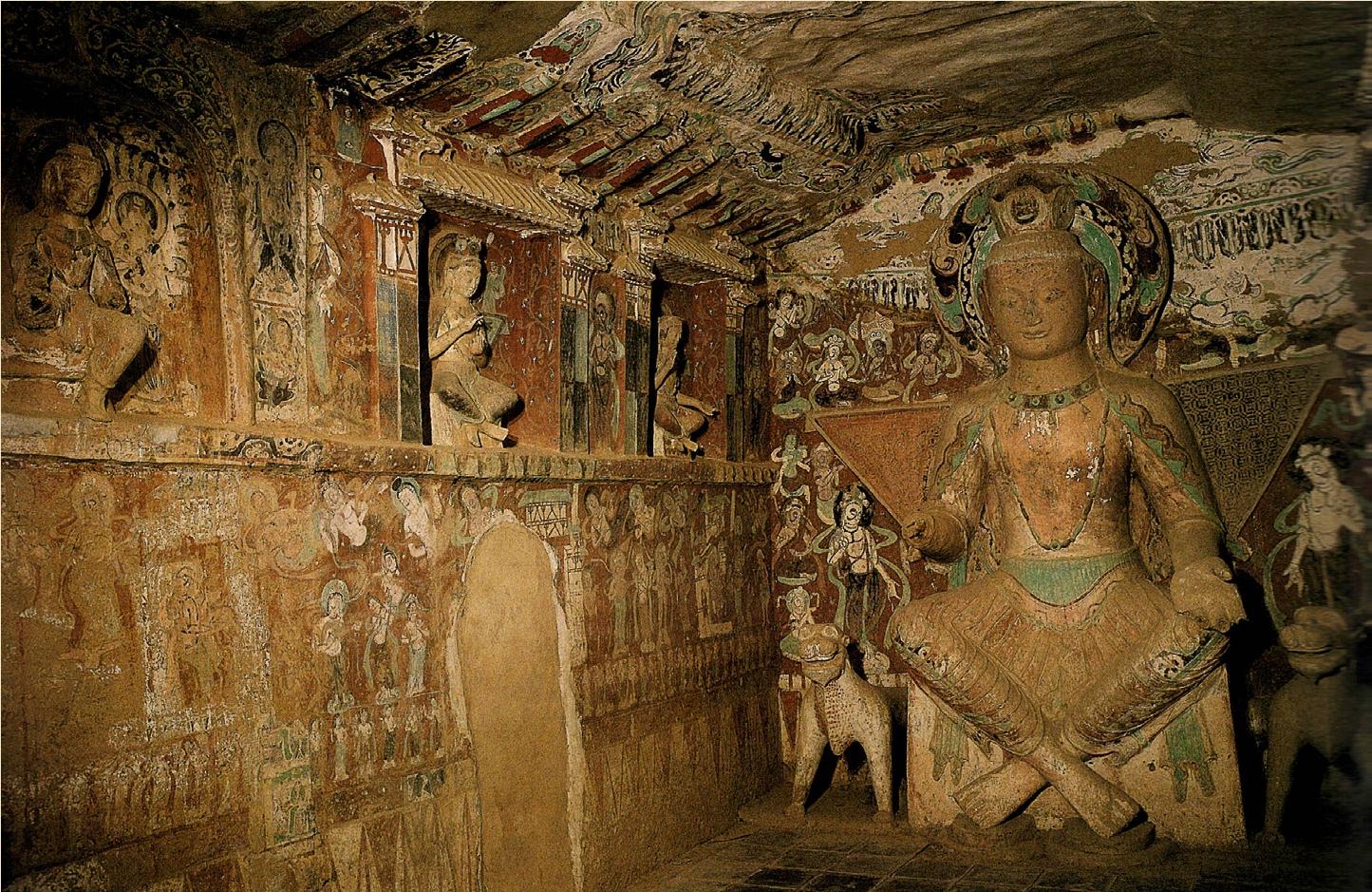 彩图4-3 莫高窟第275窟窟室内景