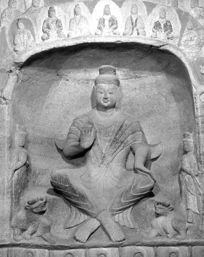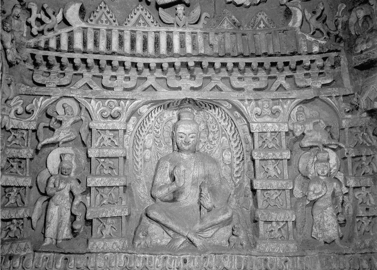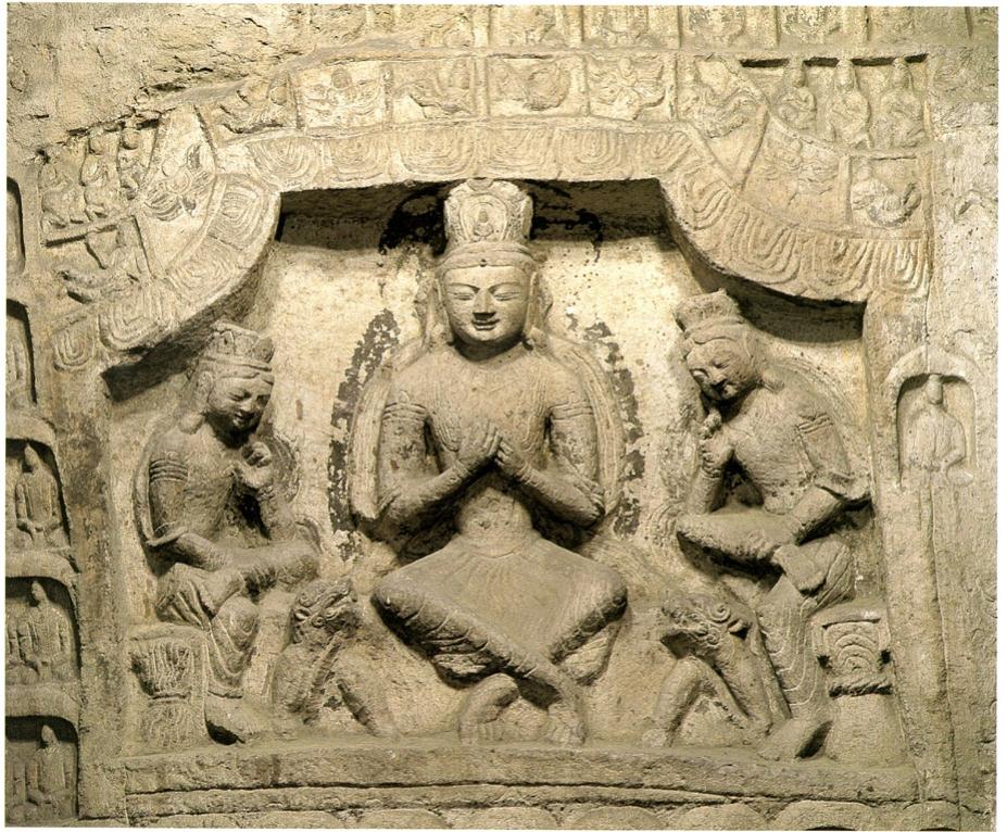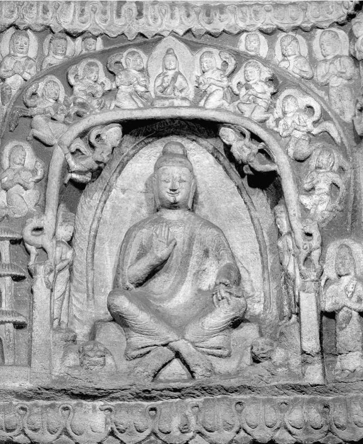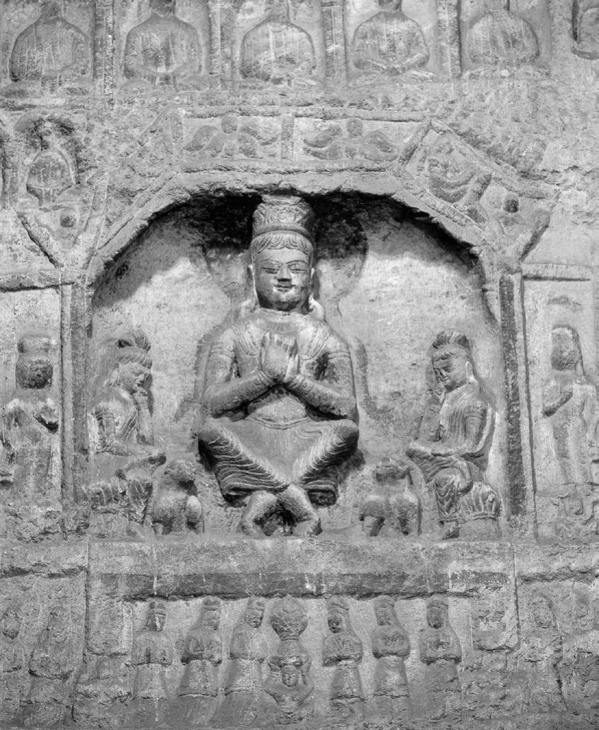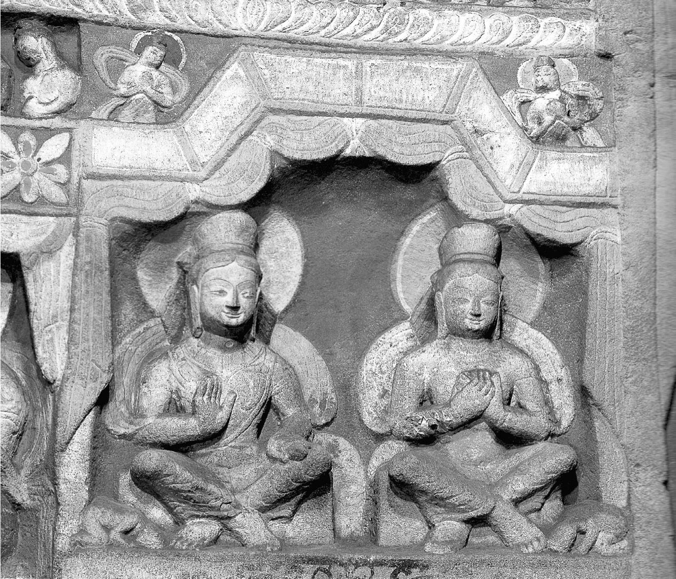 图4-10 四格盝形龛与交脚弥勒菩萨