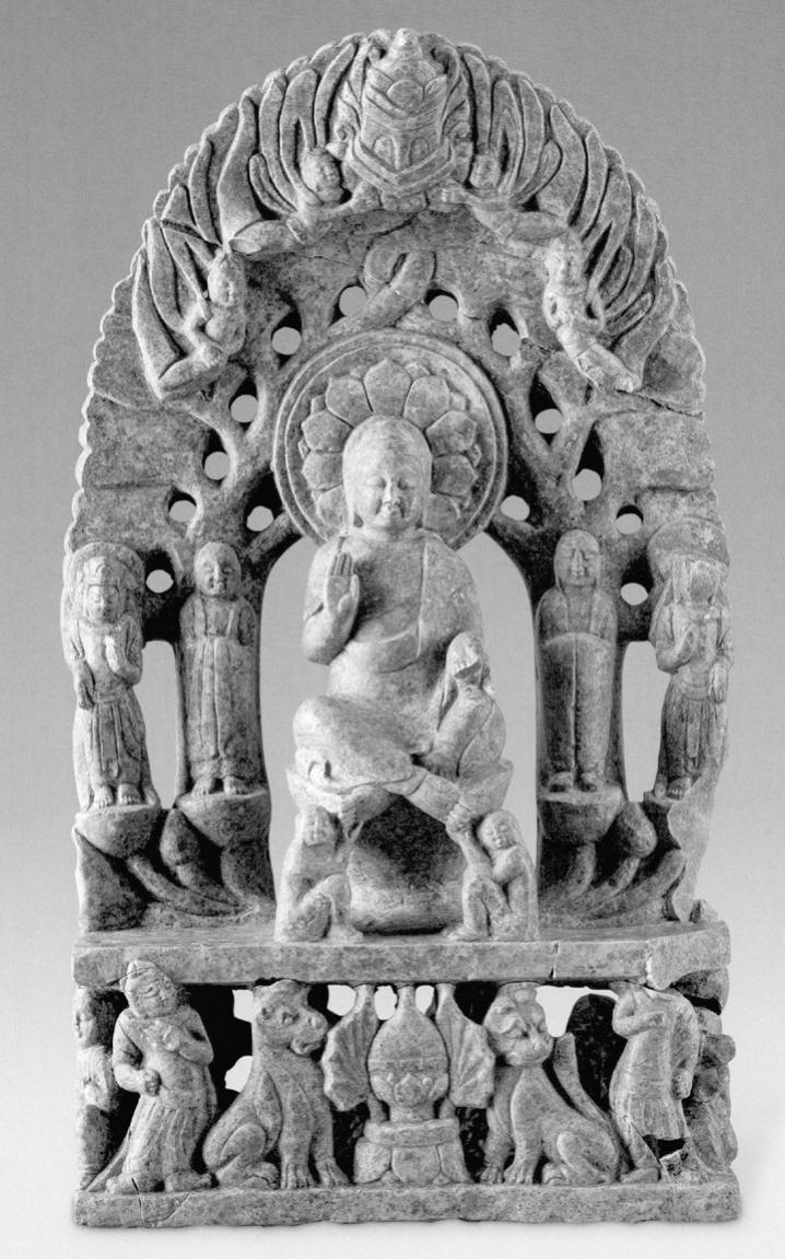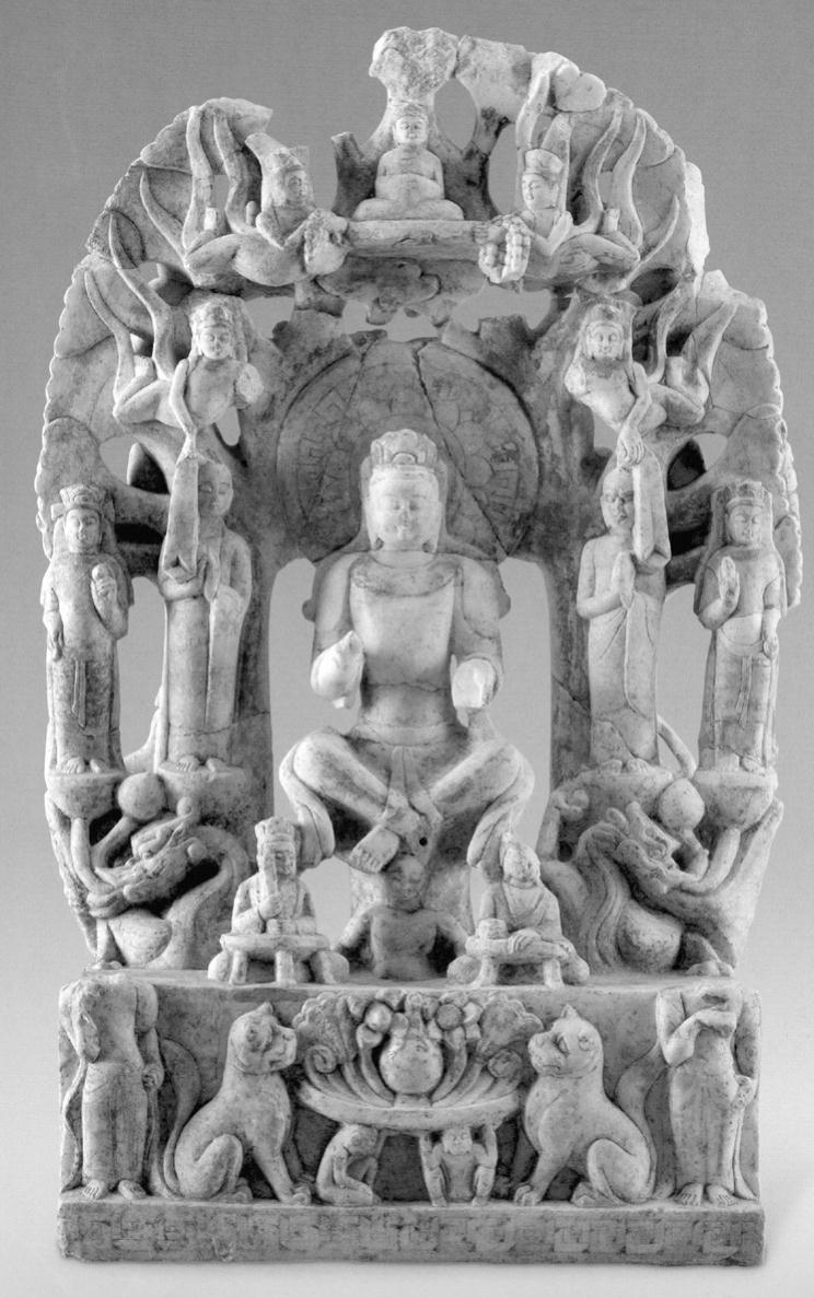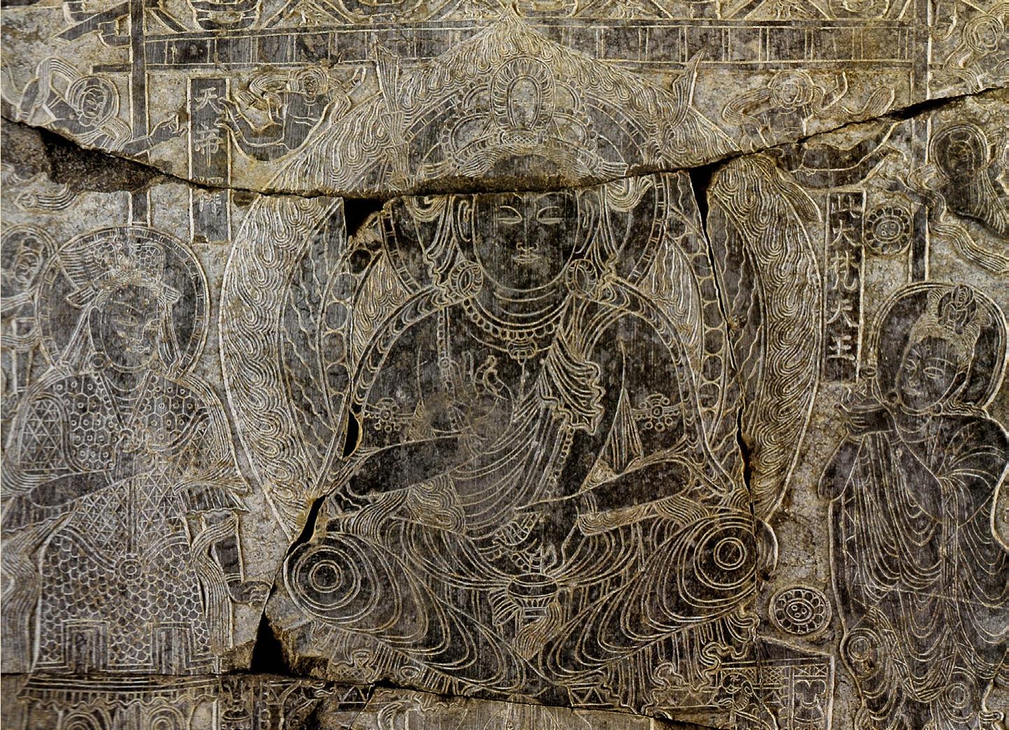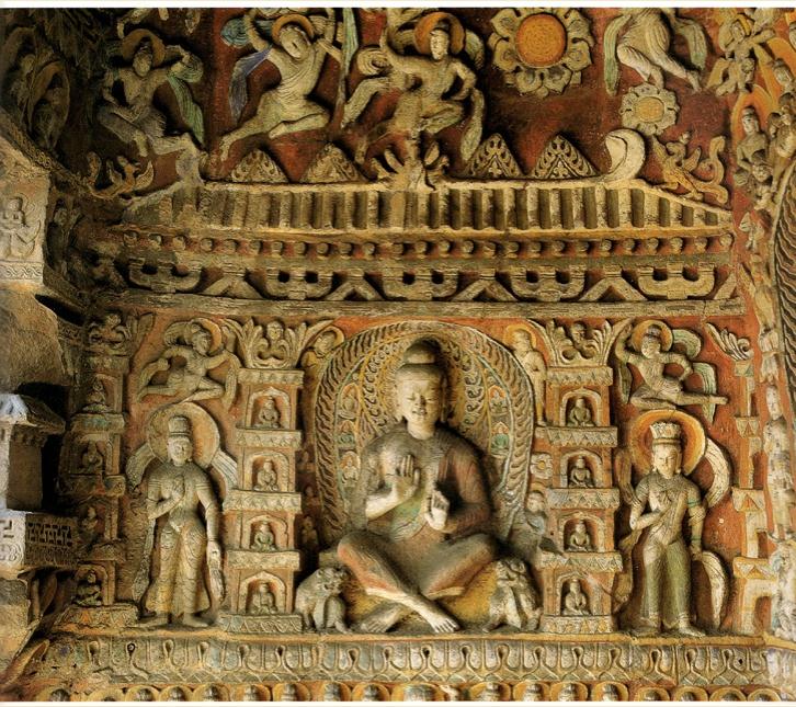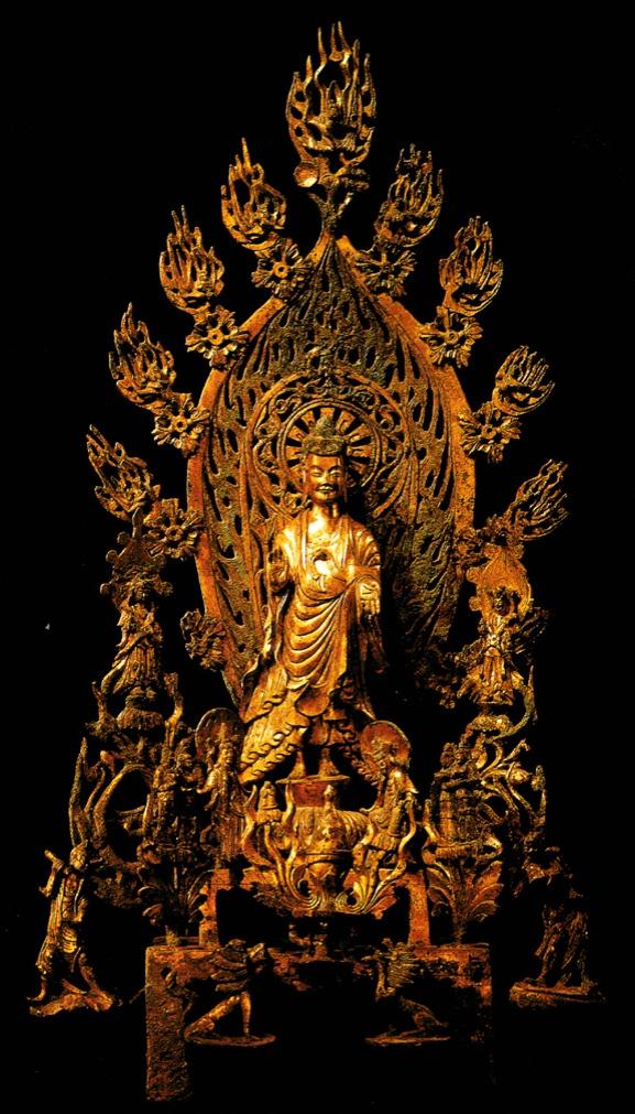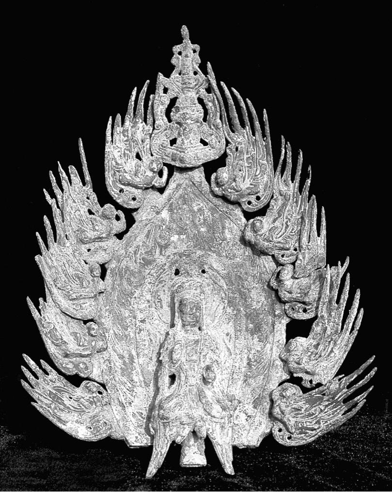 彩图4-12 谭副造释迦像背屏背面交脚弥勒