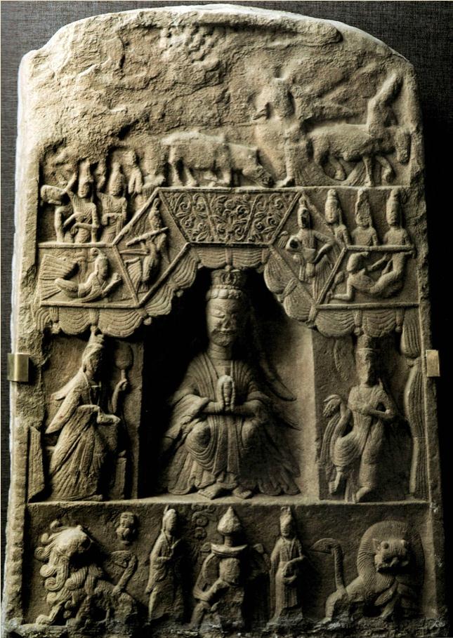 彩图4-19 交脚弥勒造像碑